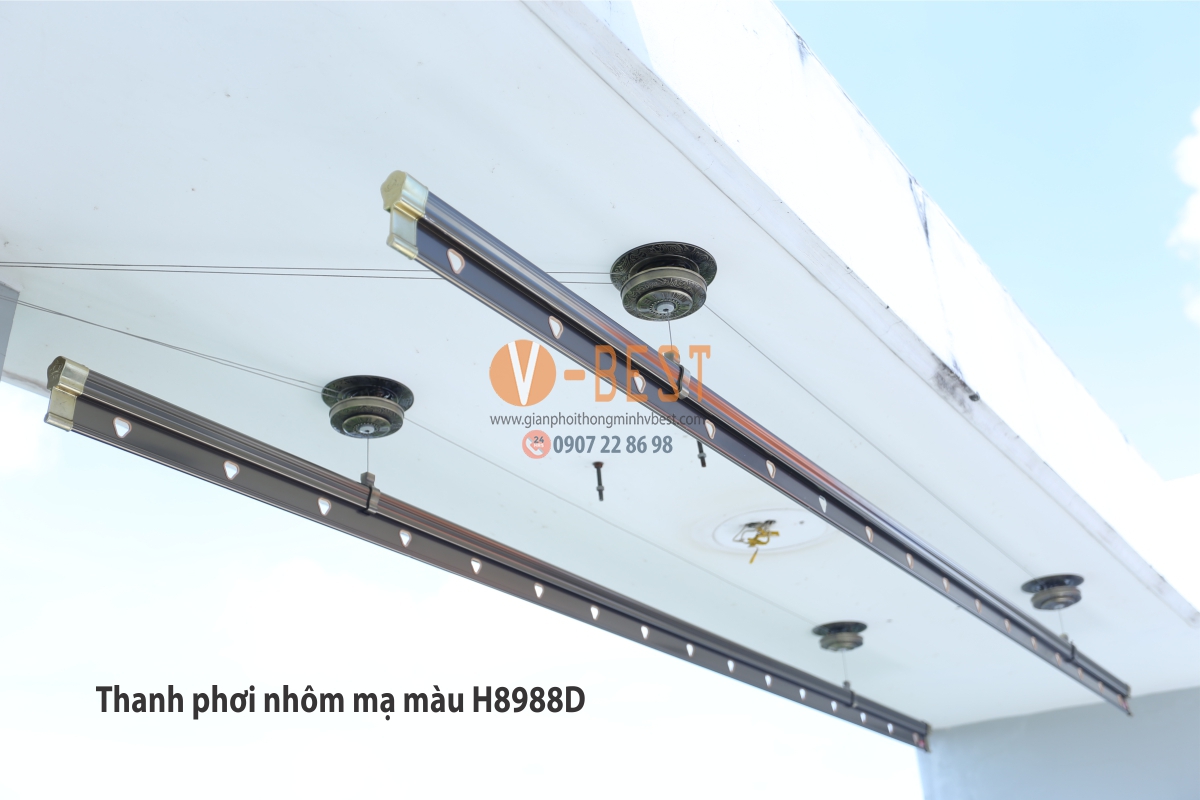 Thanh phơi: Gồm 2 thanh phơi dài 2.4m được tích hợp sẵn các khoen móc treo cố định chống bay quần áo khỏi thanh phơi.